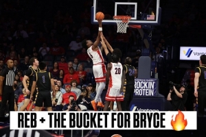 布莱斯摘下前场篮板补篮 詹姆斯转发赛场照:耶 6号!