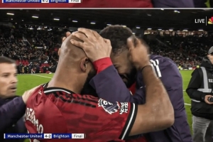 蜂王与狼王!赛后曼联两大新援姆伯莫和库尼亚紧紧拥抱庆祝胜利